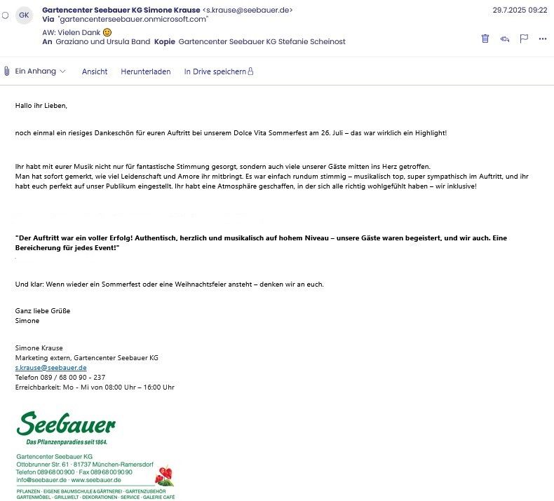 Werden Sie Teil unserer wachsenden Familie zufriedener Kunden und erleben Sie unvergessliche Live-Musik für Ihre Veranstaltung!